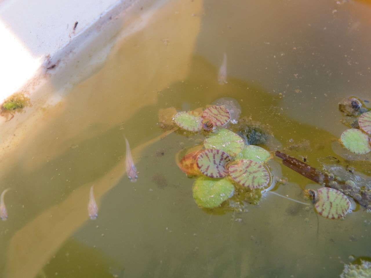 ヒメダカと白メダカの稚魚であるが順調に育っている。同時期に孵化したのにヒメダカと白メダカではかなり大きさが違う。ついでにヒメタニシやレッドラムズホーンの稚貝も育っている。ヒメタニシは水質安定を目的に入れたが、レッドラムズホーンは水草についていたのが大きくなった。今年の赤ちゃん達はチョウセンブナといい元気に育っている。