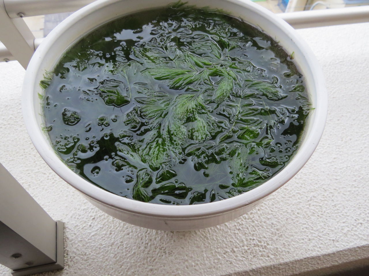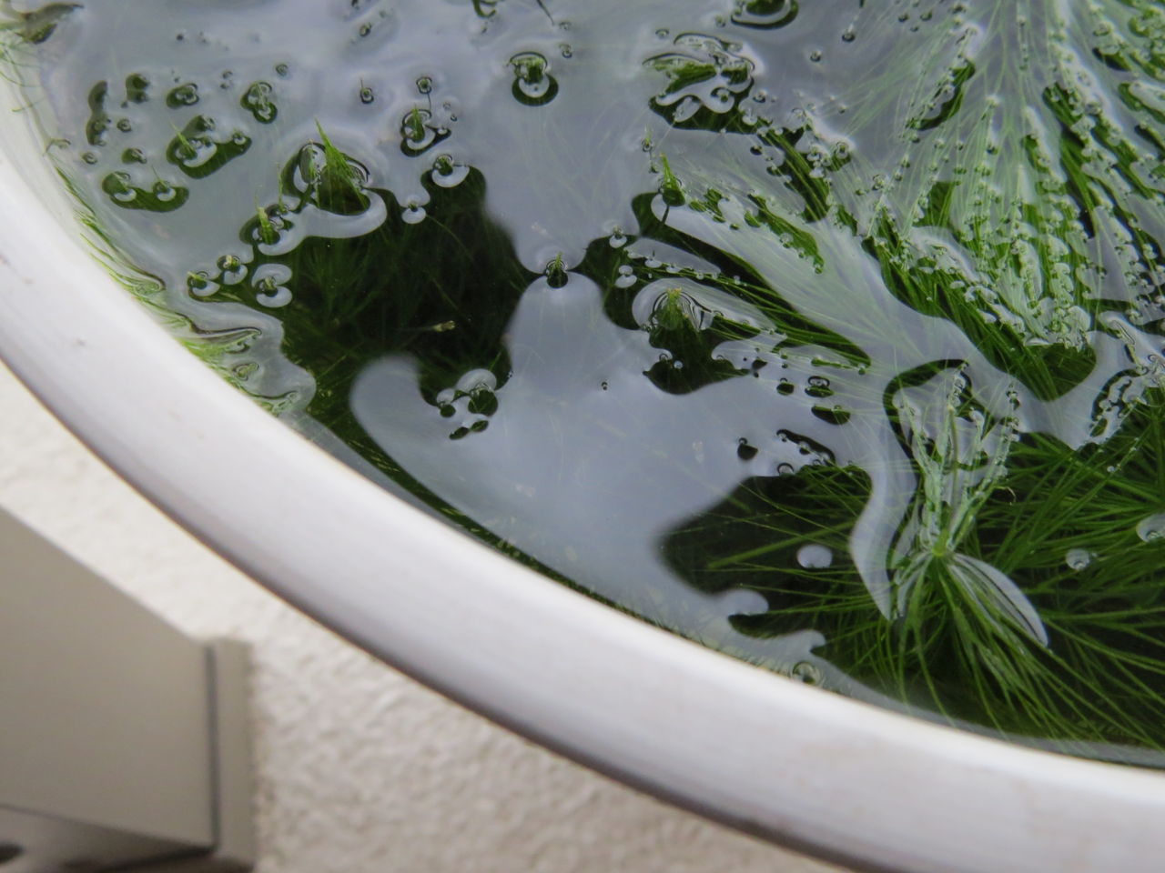 今日も先日トリミングしたマツモを入れた鉢からヒメダカの稚魚を沢山捕まえて稚魚を飼育している専用容器に移動した。おそらくマツモにヒメダカの卵が付着しており孵化しているのだろう。