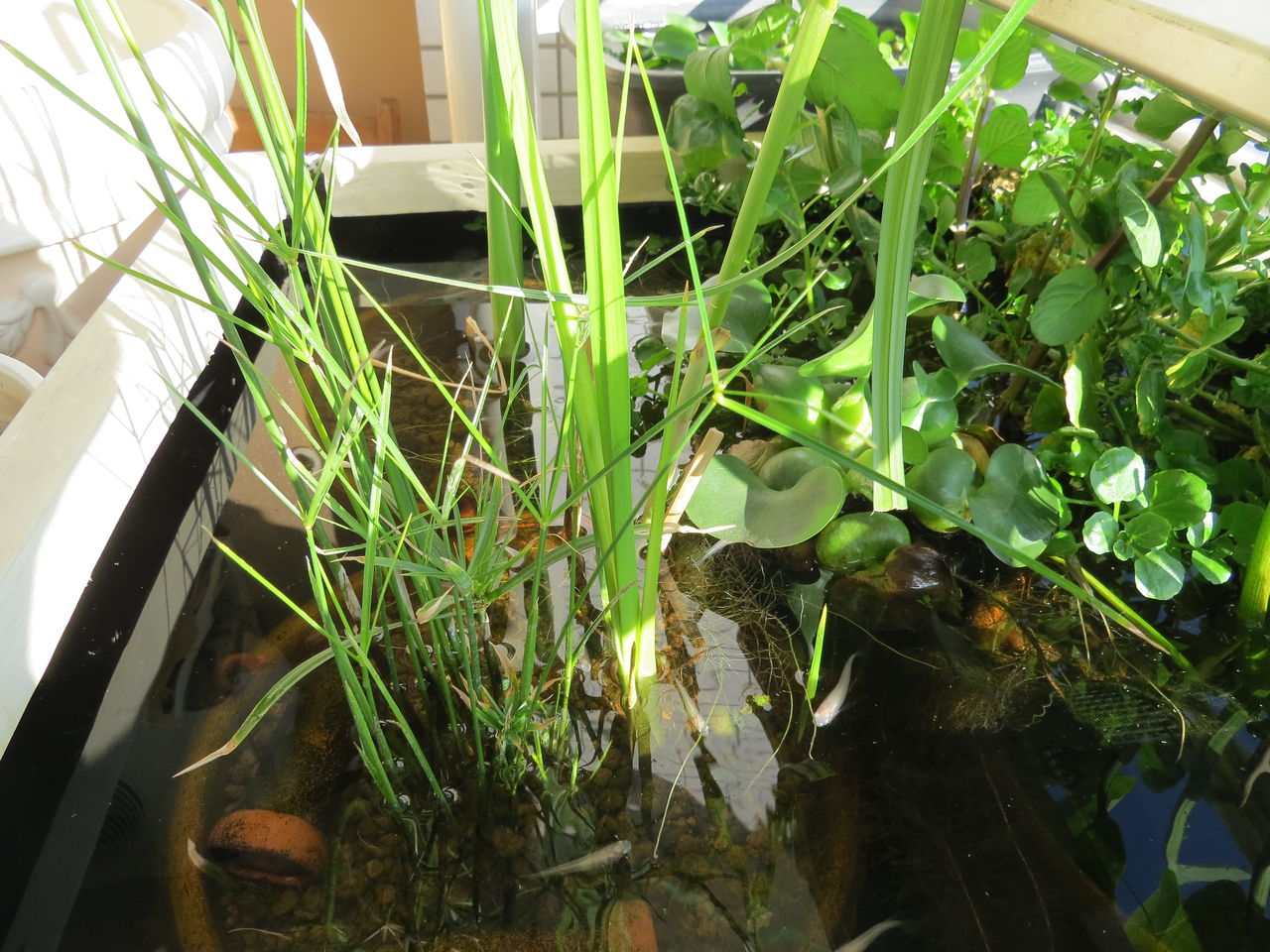 今日は強風が吹いて抽水植物を中心に被害を受けた。毎回、大きく育つ→強風で茎や葉が倒れる折れる→心が折れる→気持ち切り替える→再び大きく育つ の繰り返しである。ただ今回の被害はまだマシな方である。