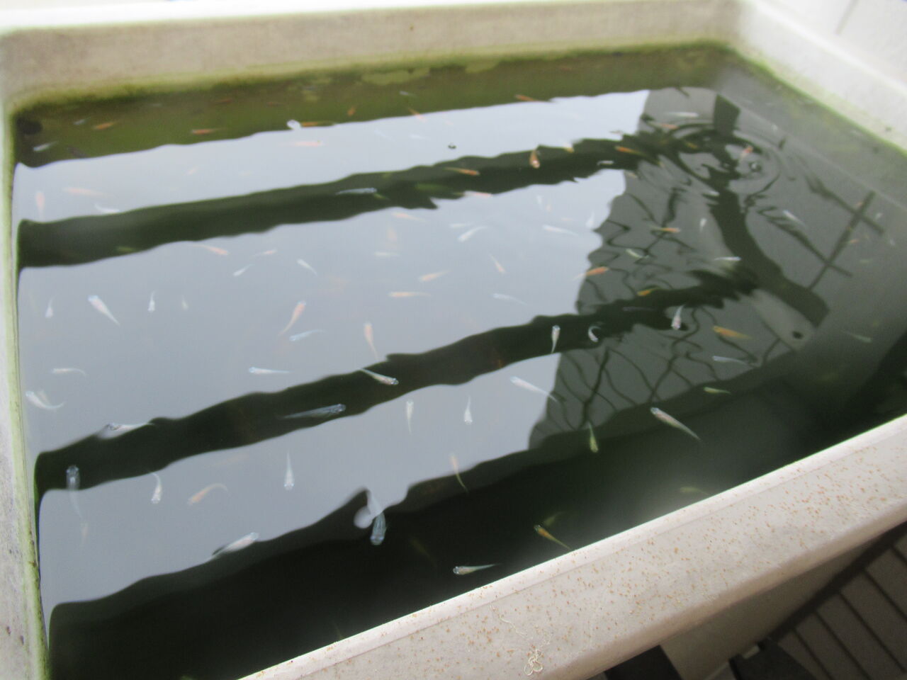 メダカの稚魚たちはかなり大きくなりました。親と変わらない大きさの個体もいます。