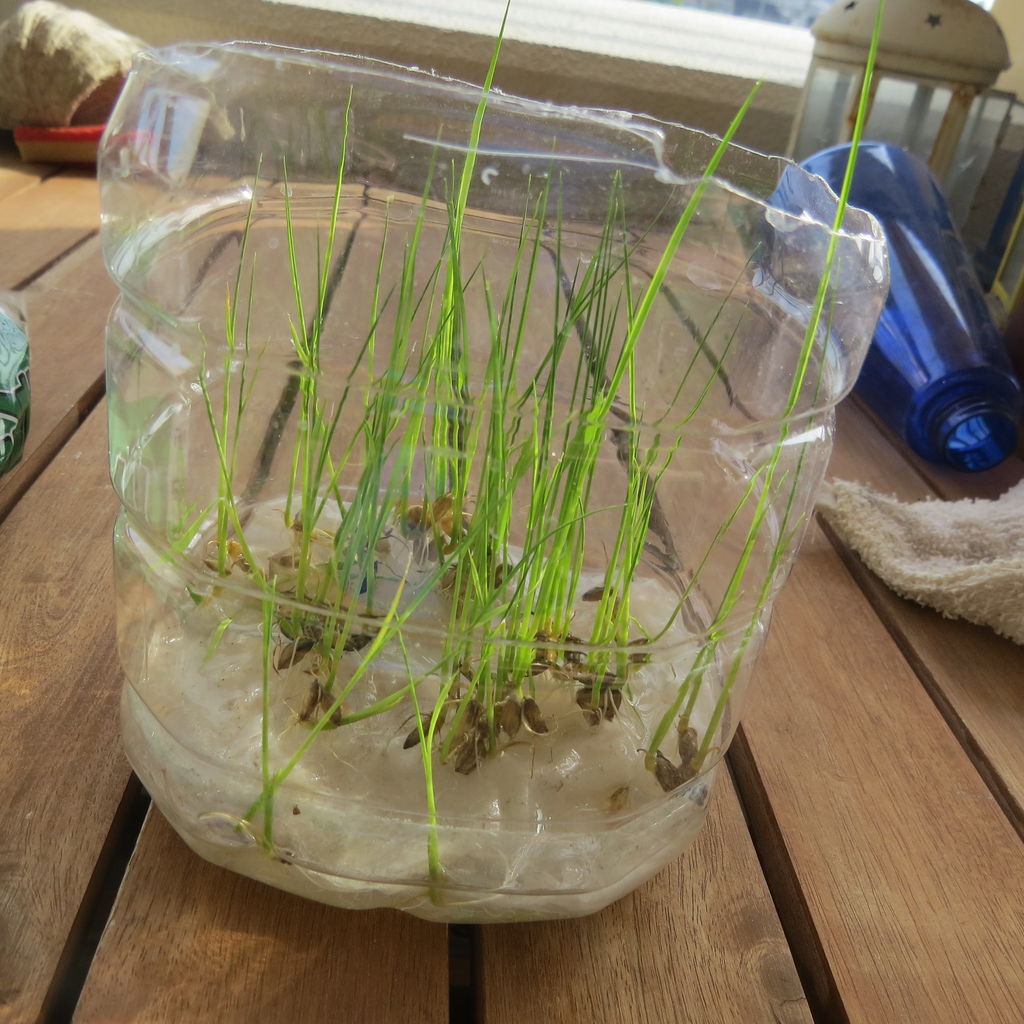 イネを植えて完了です。1株ずつわけません。何株かをまとめて植えてしまいます。それでもバケツイネ(プランターイネですが)問題ないです。今年も大きく育ってほしいです。