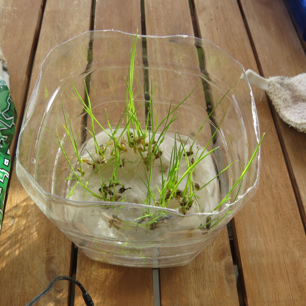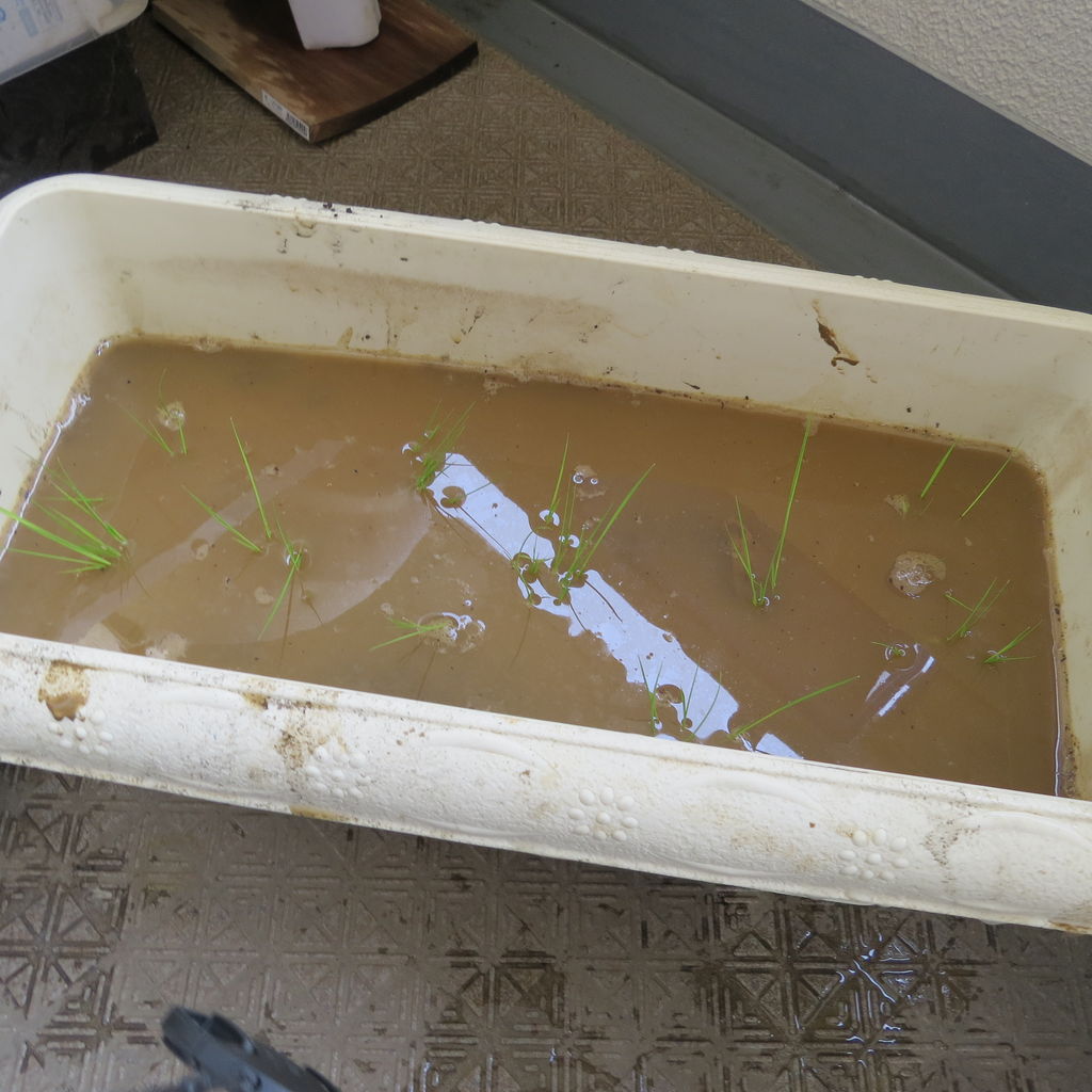 5月6日にイネの芽出しを行ってから、20日経ち、芽も大きくなってきたので、植えることにしました。いきなり暑くなりましたが、昨年は早すぎたことを反省して、少し遅めの植え替えにしました。