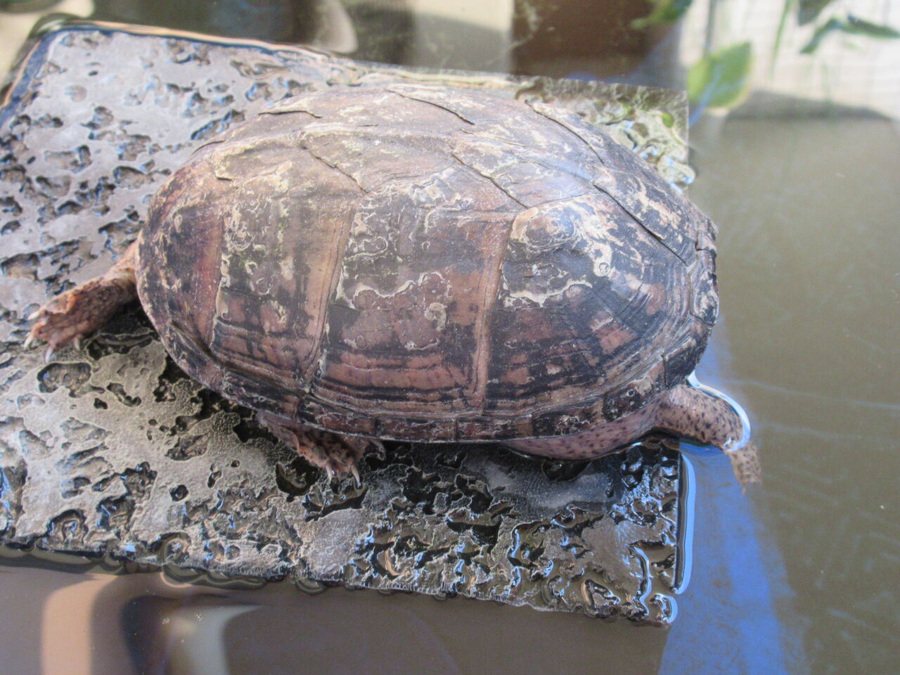 生まれ故郷の「ミシシッピ川流域」では、水中から浅瀬に移動して流木にのって休んで「バスキング」しているので、そのような環境を作ってあげれば「バスキング」するのではないかなと思ったのです。