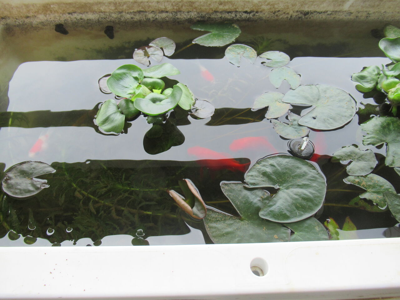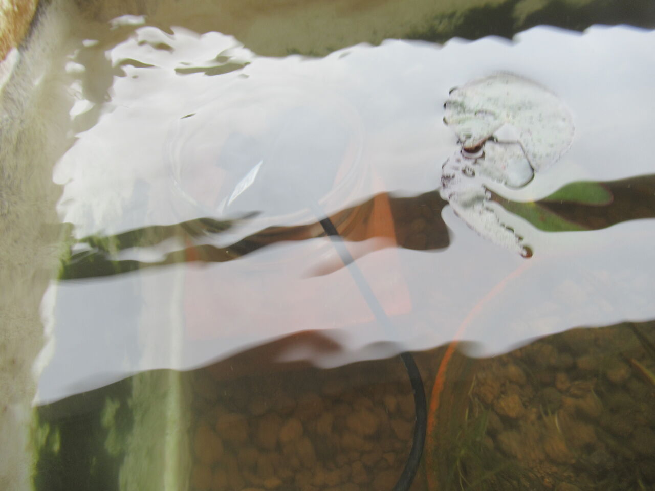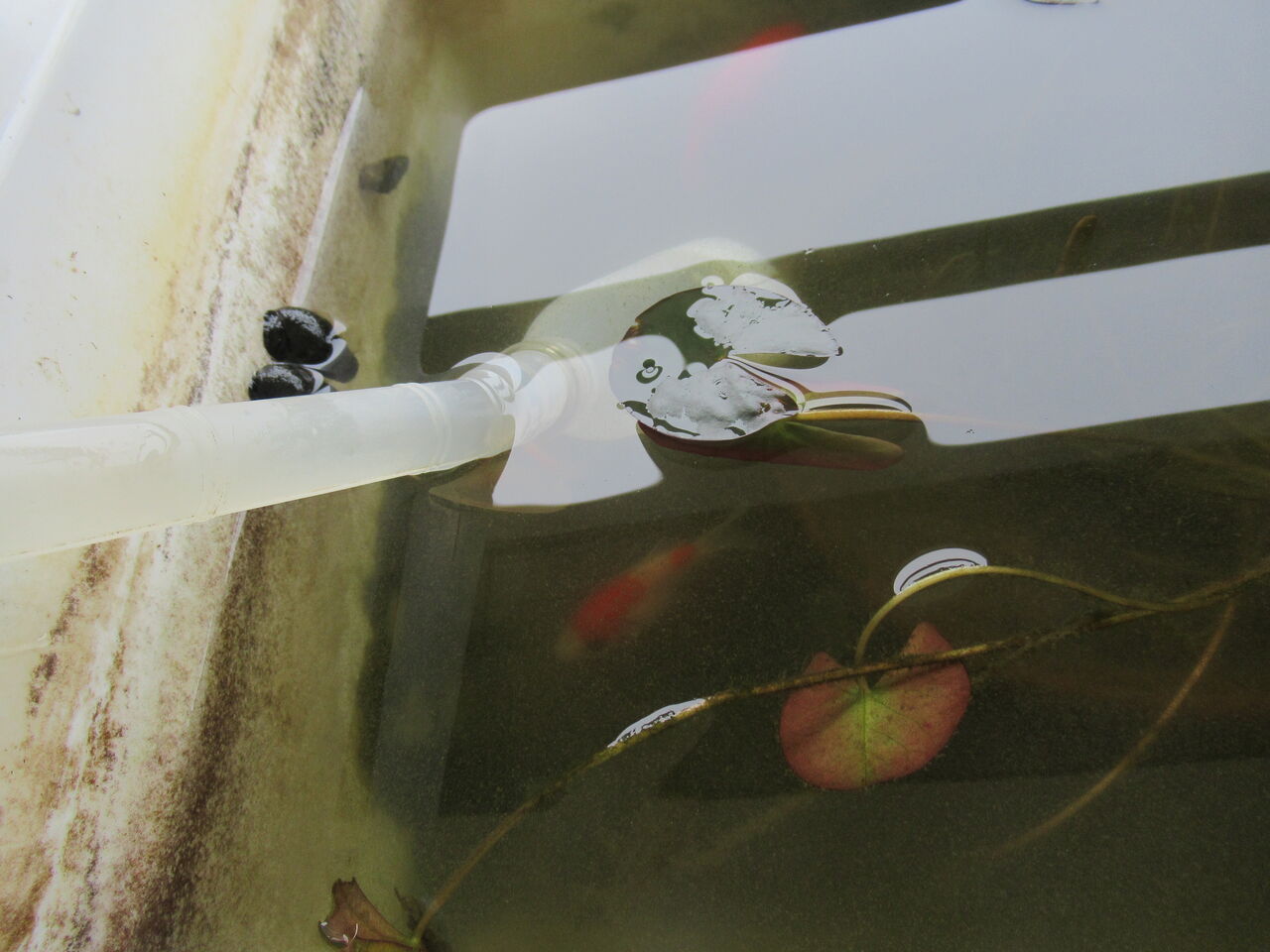 元々「ろ過機」を入れていない屋外の飼育容器ですので、水はグリーンウォーター化しており、かなり濁っております。