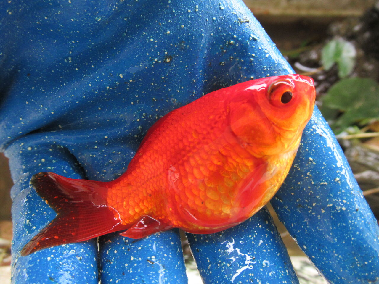 素赤の福ダルマ金魚です。健康的な感じはします。