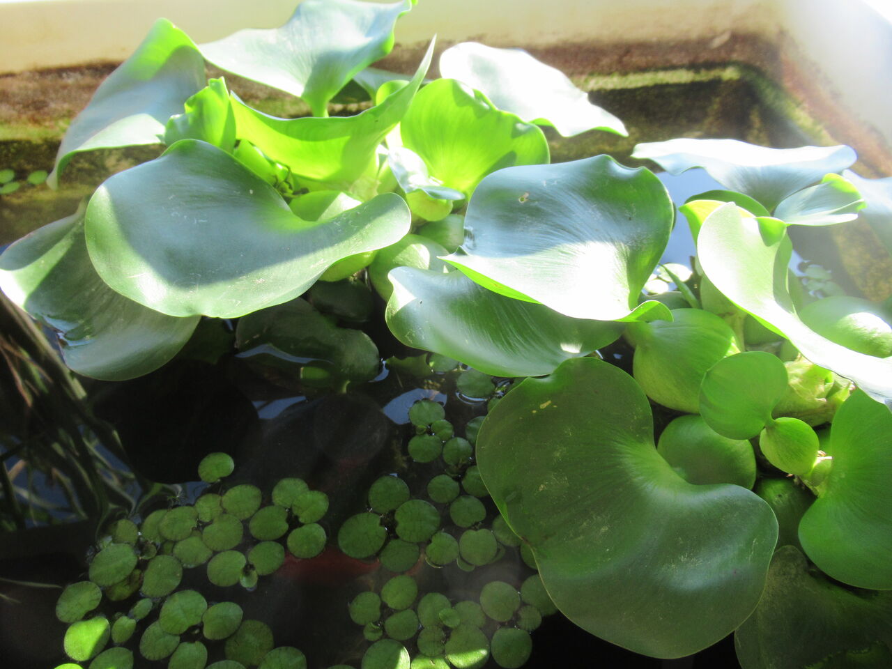 ホテイ草は夏になると、強い日差しがホテイ草にあたり、メダカや金魚などを一緒に飼育しているとメダカや金魚の排泄物やエサの食べ残しが分解され、ホテイアオイの肥料となり、メダカや金魚は夏は元気でエサを多く食べて排泄も多くなり、水の中の栄養が増えて、これを吸収しますので、自然とホテイ草が大きくなる条件が揃います。