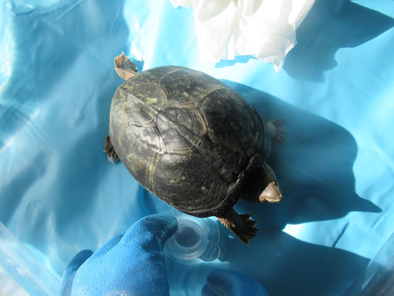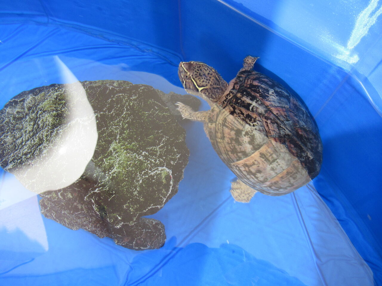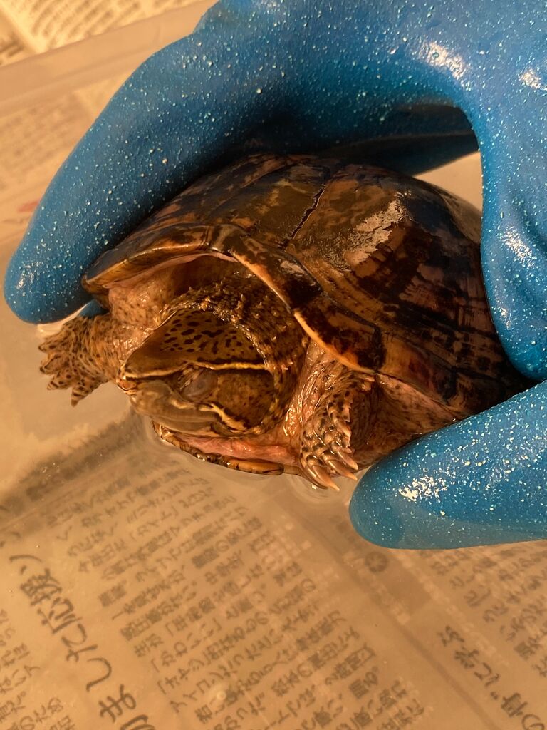 ミシシッピニオイガメが日本にきた情報もわかりません。ただ、ミシシッピアカミミガメ(=ミドリガメ)は1950年代後半なので、およそ70年も経過しており、各地に放流された個体が繁殖して、すっかり定着してしまっております。