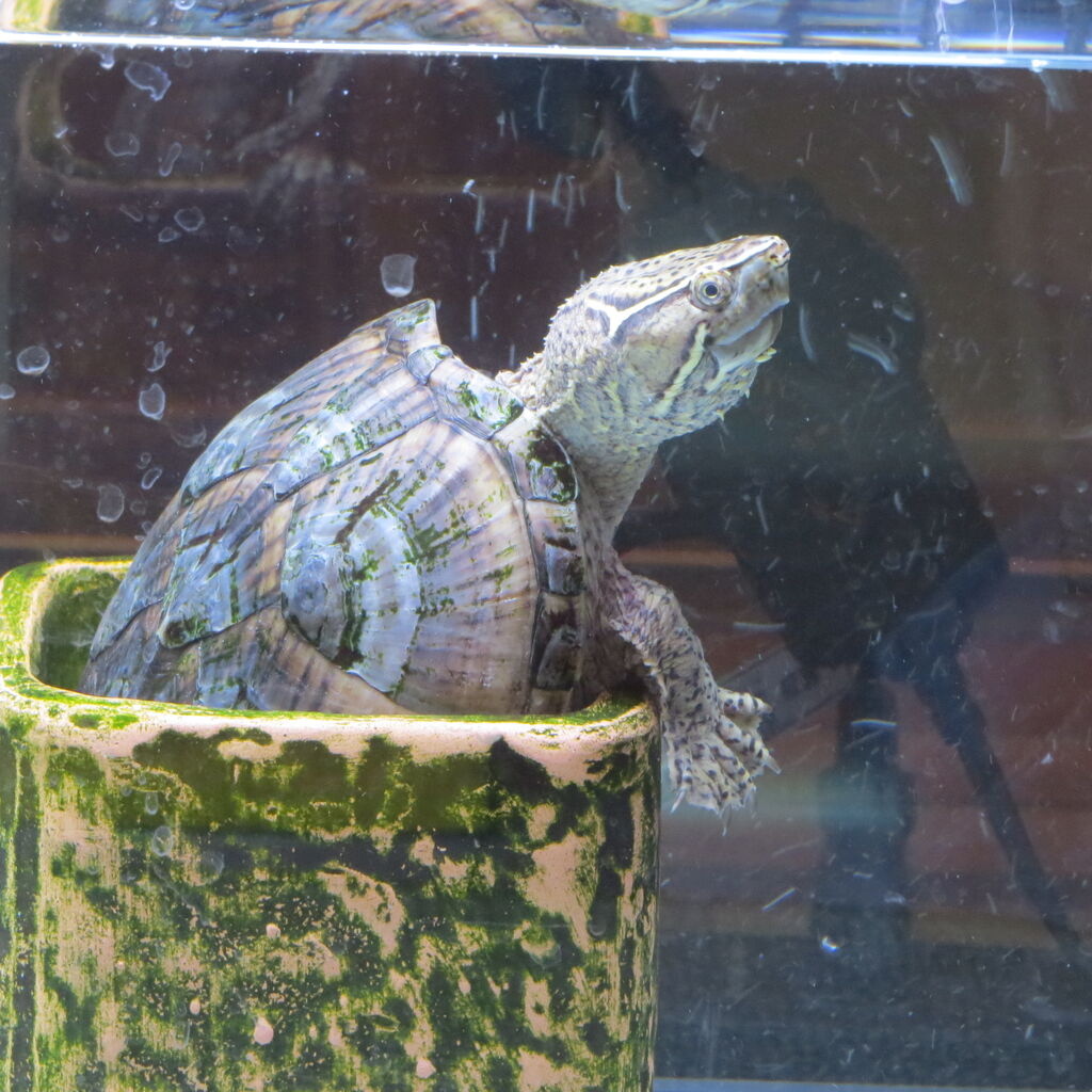 ミシシッピニオイガメに関しては、ミシシッピアカミミガメ(=ミドリガメ)よりも日本にきてからの期間は短いと思われますし、もしかしたら30年も経っていないのかもしれません。