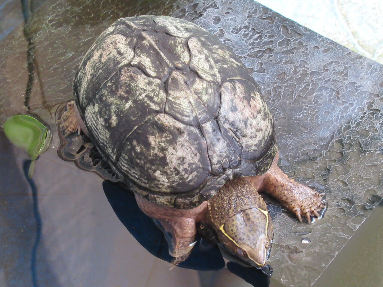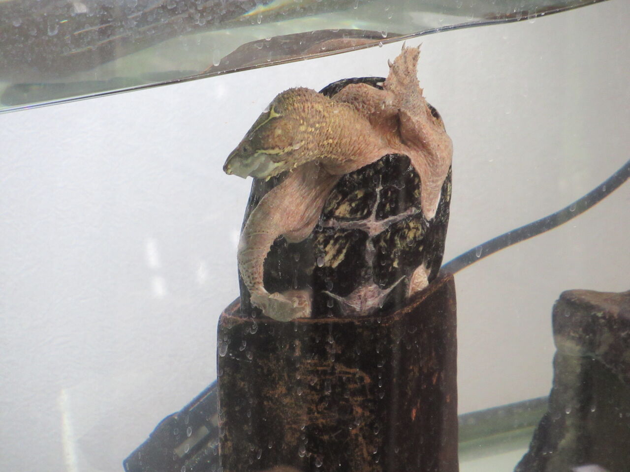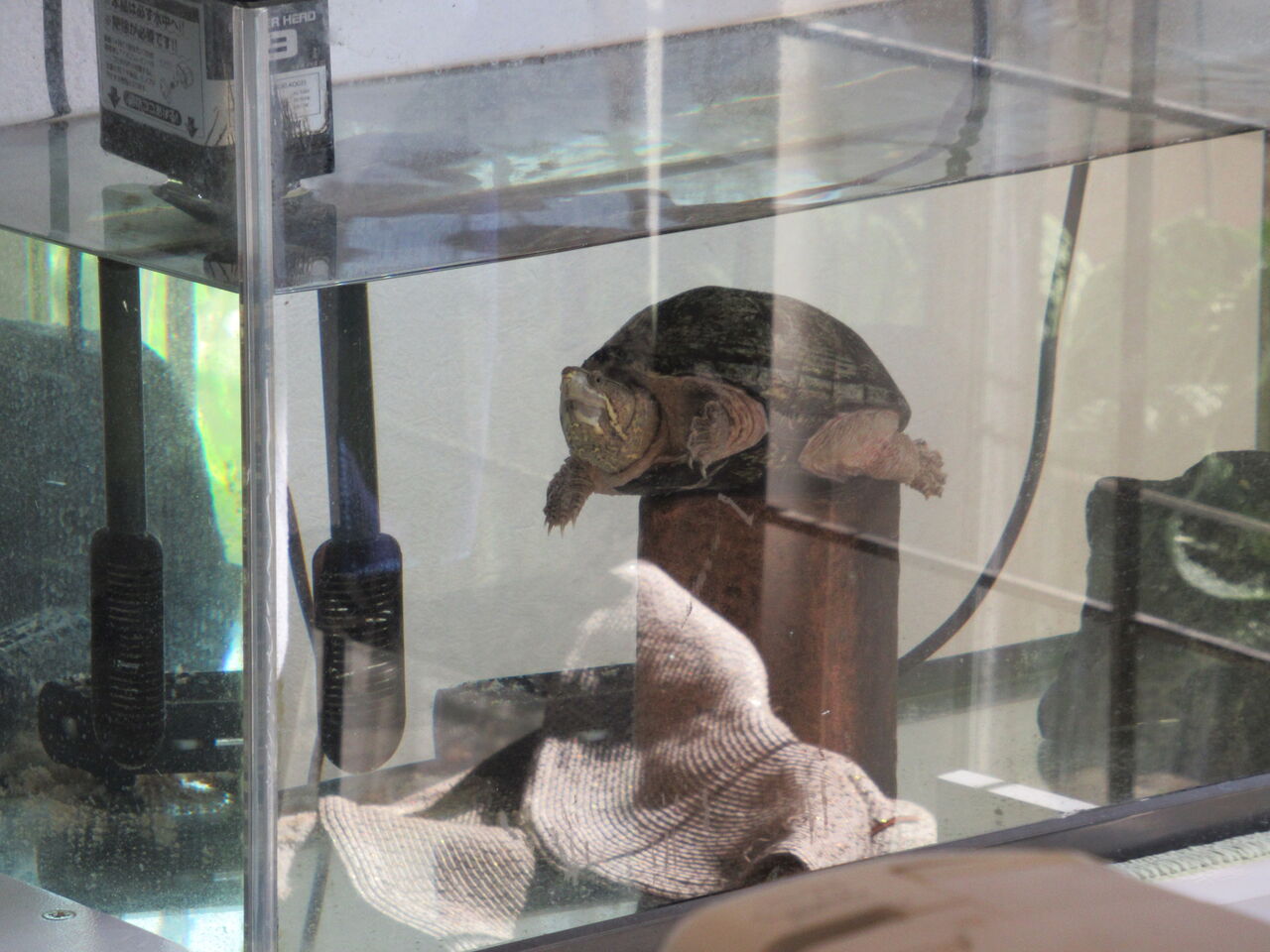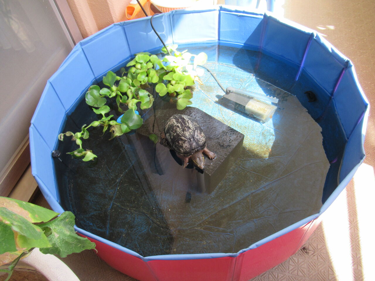 ミシシッピニオイガメの『ミッピーちゃん』は、屋外の強風なんのその、のんびりと過ごしておりました。