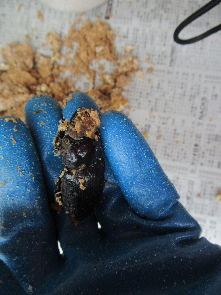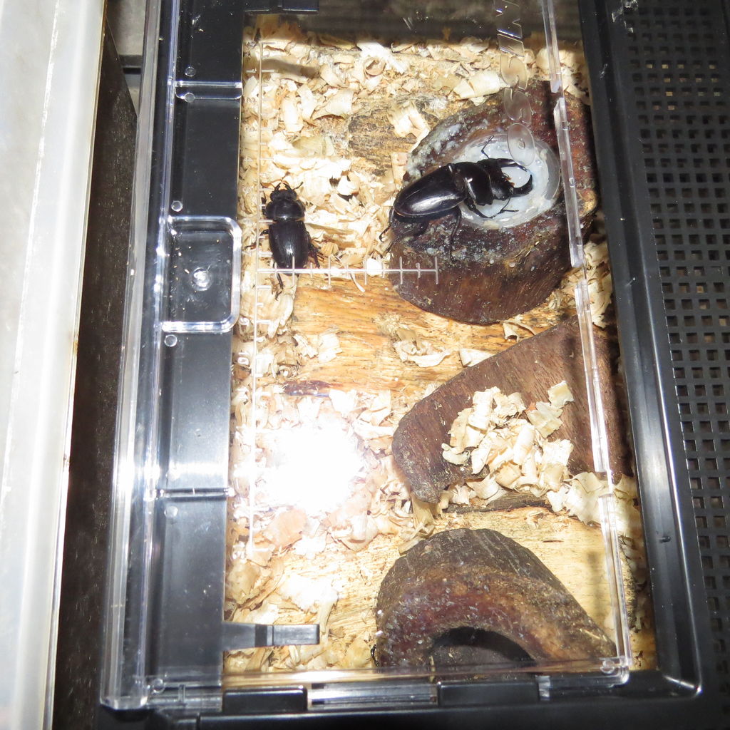 最近のオオクワガタの成虫は暖かくなるにつれて動きが活発になり、エサのゼリーも1日で平らげてしまう日も出てきました。夜の覗いてみますとメスにオスが寄り添うような光景を目にしていました。