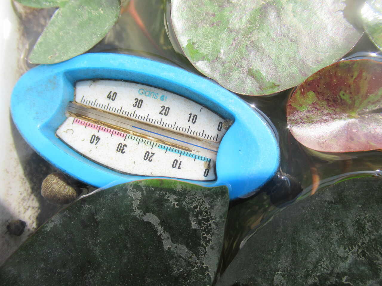 人間にとって猛暑日ともなれば、クーラーなしでは熱中症で倒れてしまうような気温ですが、メダカにとっては元気に生きていけるギリギリの水温であります。